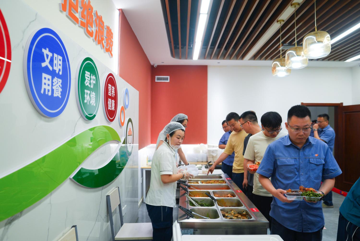 當日開餐前,現場排起長隊,整齊有序。公司黨委委員、第一副總經理張衛東現場對打餐環境、餐線布置、菜品質量等進行檢查。他對餐線的便捷性和實用性給予肯定,并提出三點工作要求:一要嚴把食材“入口關”,確保菜品安全可靠、品質過硬,讓員工吃得放心、安心;二要動態收集員工意見,以錯峰安排、細節優化提升體驗,切實把好事辦好、實事辦實;三要將“細心、貼心、暖心”的服務理念貫穿始終,餐線作為服務一線的重要窗口,不僅要解決員工誤餐問題,更要讓員工“暖到心里”,成為支持大家安心工作的“能量站”。